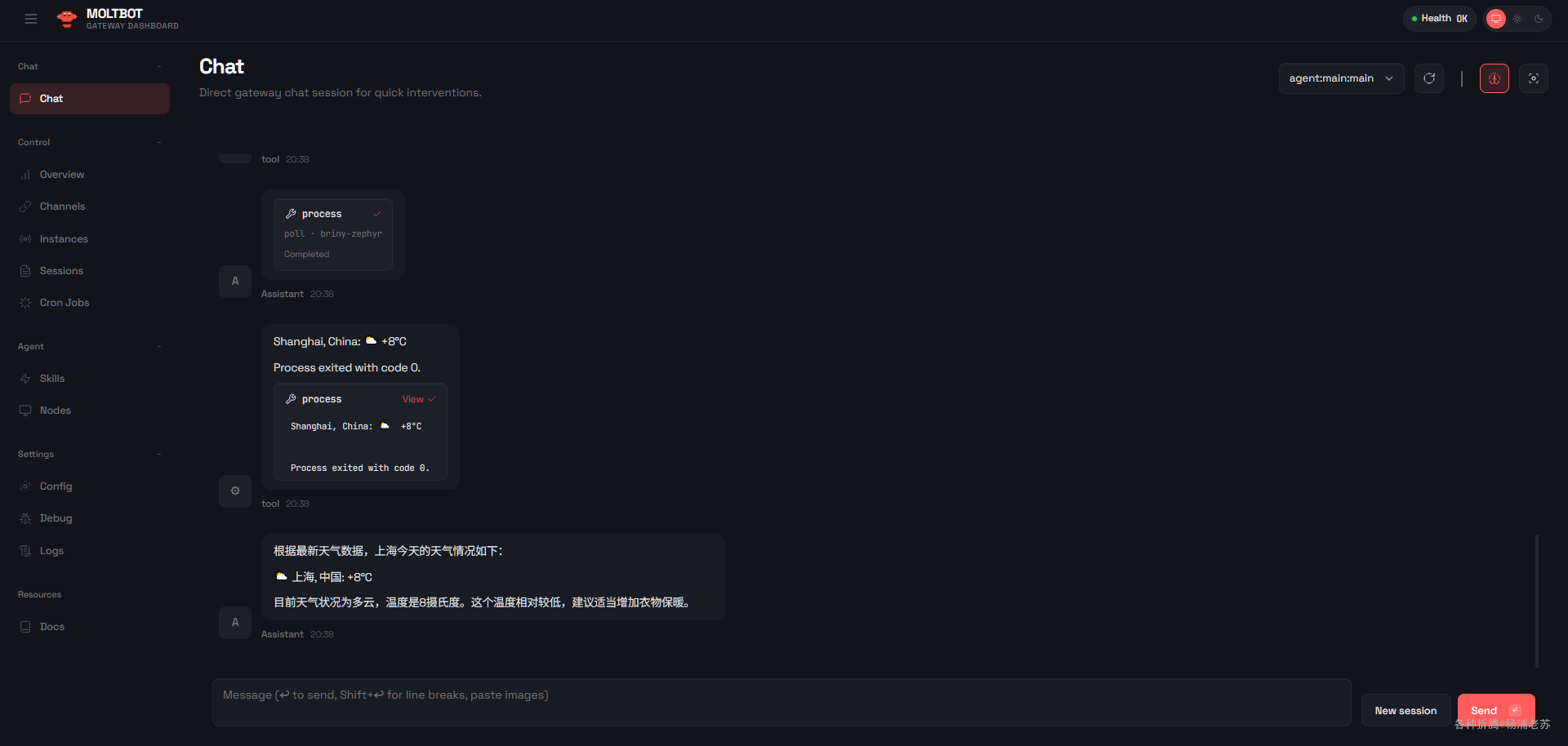 • 强大的工具集:浏览器控制(Puppeteer)、终端执行、文件读写、Canvas 绘画、定时任务(cron